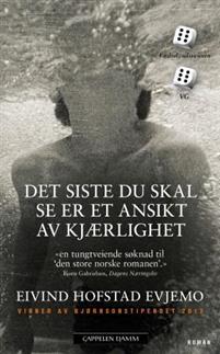 VINNER AV UNGDOMMENS KRITIKERPRIS TILDELT BJØRNSONSTIPENDET 2013 «(…) en tungtveiende søknad til «den store norske romanen». Bjørn Gabrielsen, Dagens Næringsliv Terning 6 VG Terning 6 Fædrelandsvennen Det han så gjorde den natta angret han på, men han måtte stå for det. Han løftet dyna og sparket henne. Først én gang og så én gang til. Hardt. Vinteren fester grepet om en norsk kommune. En far har satt seg fast i familien. En funksjonshemmet jente tas imot av sin primærkontakt på trappa utenfor ungdomsskolen. Rektoren betrakter verden fra sitt kontorvindu. En fjortenårig gutt ligger på bunnen av bassenget. Grupper med asylsøkere okkuperer bibliotek-pc-ene. Skolegulvene bones, gjenglemtkurvene fylles opp. Stadig nye feilkopier pumpes ut av rådhusets hovedprinter. På veiene passerer bilene, på himmelen passerer flyene. Kronprinsen kommer. «Empatisk prosa fra et lysende talent. (…) Evjemo mestrer å fylle det helt ubetydelige og det usynlige rundt oss med en uvurderlig mening.» Silje Stavrum Norevik, Dagbladet «(…) står fram i norsk samtidslitteratur.» Ørjan Greiff Johnsen, Adresseavisen «Evjemo tar oss med inn i helt samfunn og gir livsrytmen og hverdagen ned til de minste detaljene, og alt sammen tas på alvor i et svært fint språk. Jeg kan ikke huske å ha lest en slik roman av en norsk forfatter.» Mari Nymoen Nilsen, VG, Terning 6 «Som et menneske med dype erfaringer og med formuleringsevnen til en dreven forfatter, klarer 29-åringen Evjemo å skildre «Den norske virkeligheten» langt på vei slik den oppleves av mange av oss. (…) Evjemo debuterte i 2009 og fikk Tarjei Vesaas’ debutantpris. Den nye romanen kommer ganske sikkert også til å få priser.» Emil Otto Syvertsen, Fædrelandsvennen, Terning 6 «Det siste du skal se er et ansikt av kjærlighet vil fungere som en tidskapsel om Norge akkurat nå så lenge noen forstår norsk. Men den er minst like interessant som ferskvare. (…) en bok som kan utfordre kapasiteten ti…