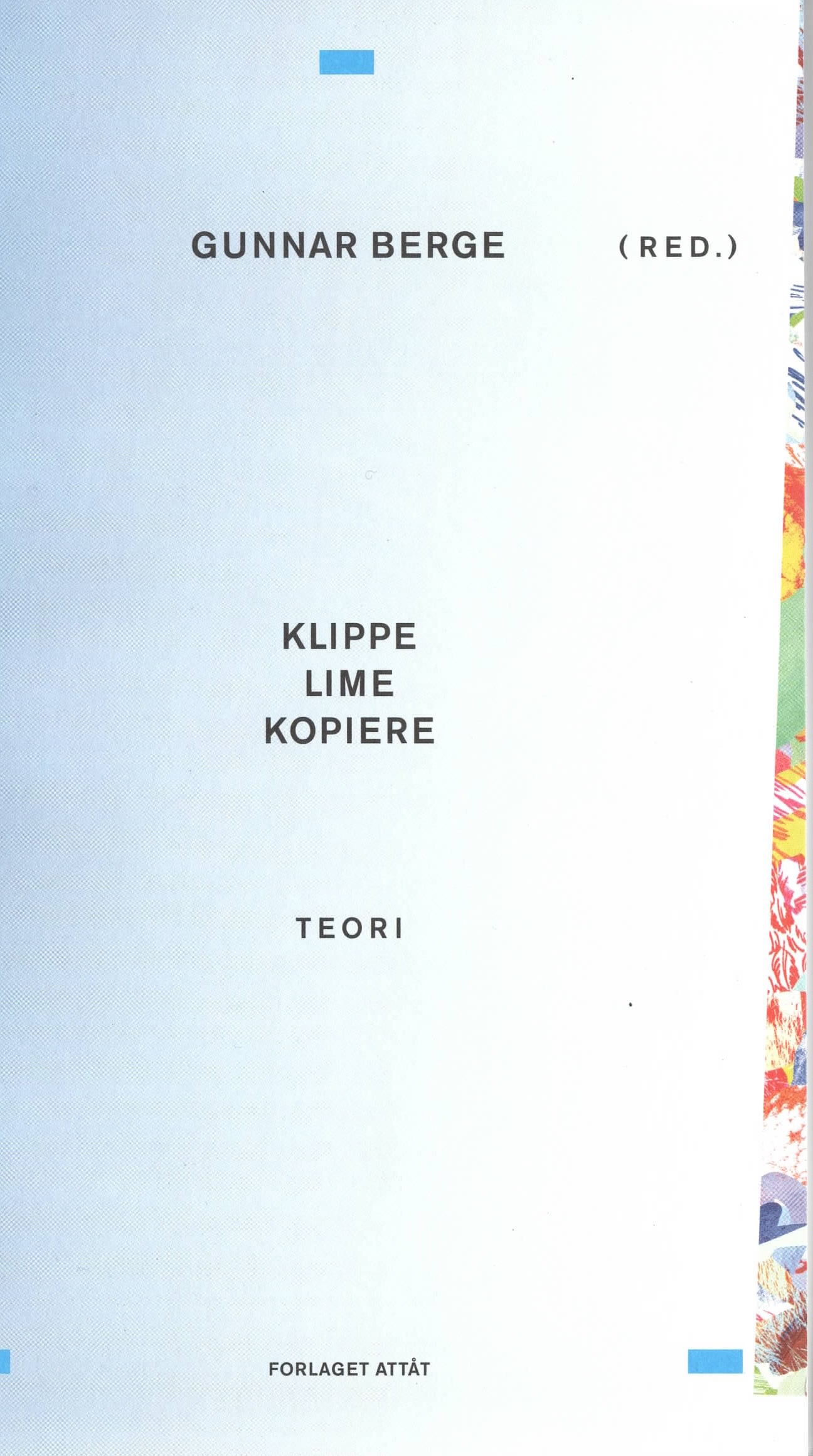 Klippe, lime, kopiere – teori består av tekster skrevet av de franske teoretikerne og poetene Christophe Hanna, Jean-René Etienne, Olivier Quintyn og Franck Leibovici. I tillegg inneholder boken bidrag av Jonas (J) Magnusson og antologiens redaktør.